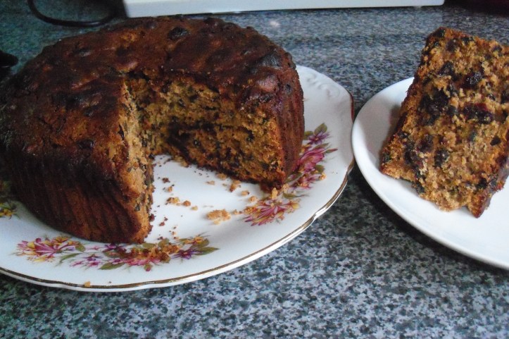 This cake is one I’ve adapted from another recipe and is one I’ve made often. It has never failed me, so I call it my Easy Peasy Fruitcake, as is just that: so easy peasy to make. It keeps wonderfully, and is my husband’s favourite. Another reason I like this recipe is because it’s readily adaptable to whatever I have in the store cupboard, weights don’t have to be too precise, and the ingredients can be changed to suit. It makes a fabulous Christmas cake, and doesn’t call for any fancy equipment or culinary skills to make it.